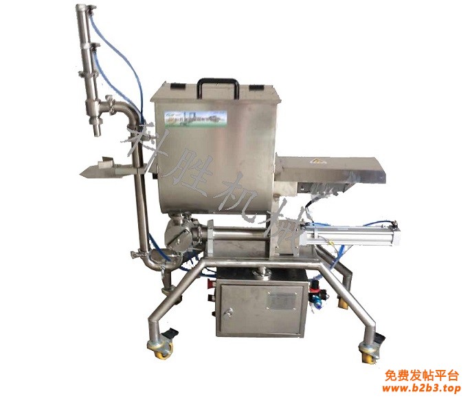 2、该机为半自动活塞式灌装机,主要用于食品行业,颗粒浆状粘度流体充填设备。
