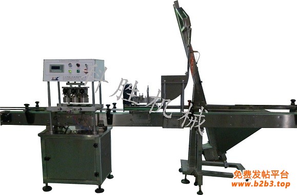 多铝盖旋盖机利用电机旋转带动底座上升瓶盖,配合锁口装置自动完成锁盖,使其达到的锁盖;本机全部利用机械原理,使用方便,安装简单.