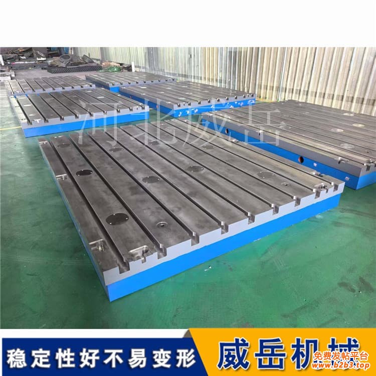 重载 / 大型工件场景:汽车发动机缸体检测、工程机械结构件装配等,T 型槽的多点均匀固定能分散工件重量,承载 30 吨级重物时台面挠度≤0.02mm,比普通平台的单点固定更稳定,防止工件滑移或变形。