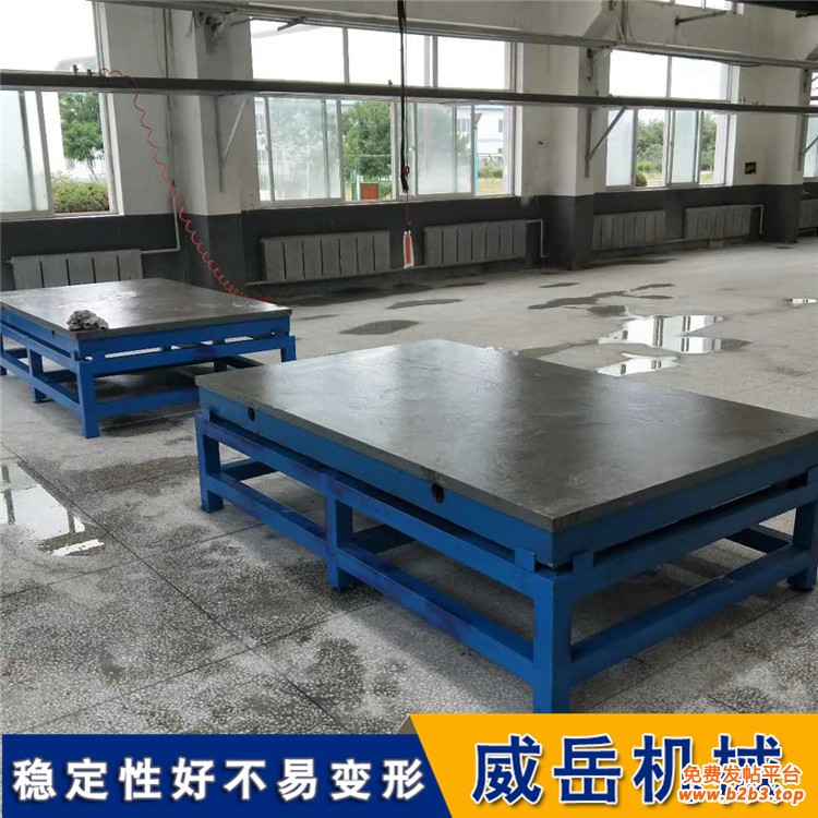 工作面上,直径小于15mm的砂孔允许用相同材料堵塞,其硬度应低于周围材料的硬度。工作面堵塞的砂孔应不多于4个,砂孔之间的距离不小于80mm。铸铁平台应无磁。铸铁平台材质:材料为强度铸铁HT200-250工作面硬度为HB160—210。经过两次处理人工退火600°----700°和自然时效2---3年,使该产品的精度稳定,性能好。工件的重量不可以超过平板的额定载荷,否则会造成工作质量降低,还有可能损坏平板的结构,甚至会造成平板变形,使之损坏,无法使用。