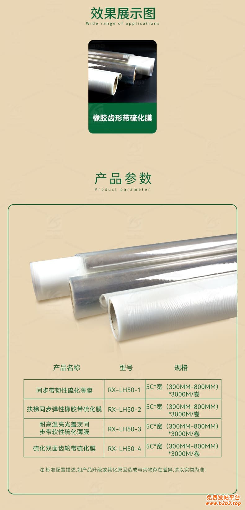 橡胶同步硫化薄膜 耐高温200度硫化橡胶转移膜 耐210度高温橡胶硫化拉伸膜 齿形带硫化离型膜