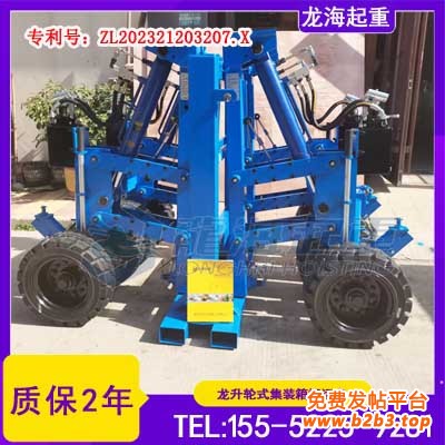 (1)龙升轮式集装箱搬运车是一款集装箱提升和运输的常用工具,只需两个人即可轻松提升或降低集装箱
