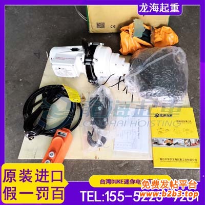 【产品质保】台湾DUKE迷你电动葫芦为台湾原装进口产品,电器部分质保6个月,机械部分质保12个月,我公司郑重承诺:厂家货源,凡在我司购买该品牌产品如有仿货、假货、拆件货均以货值百倍赔偿!