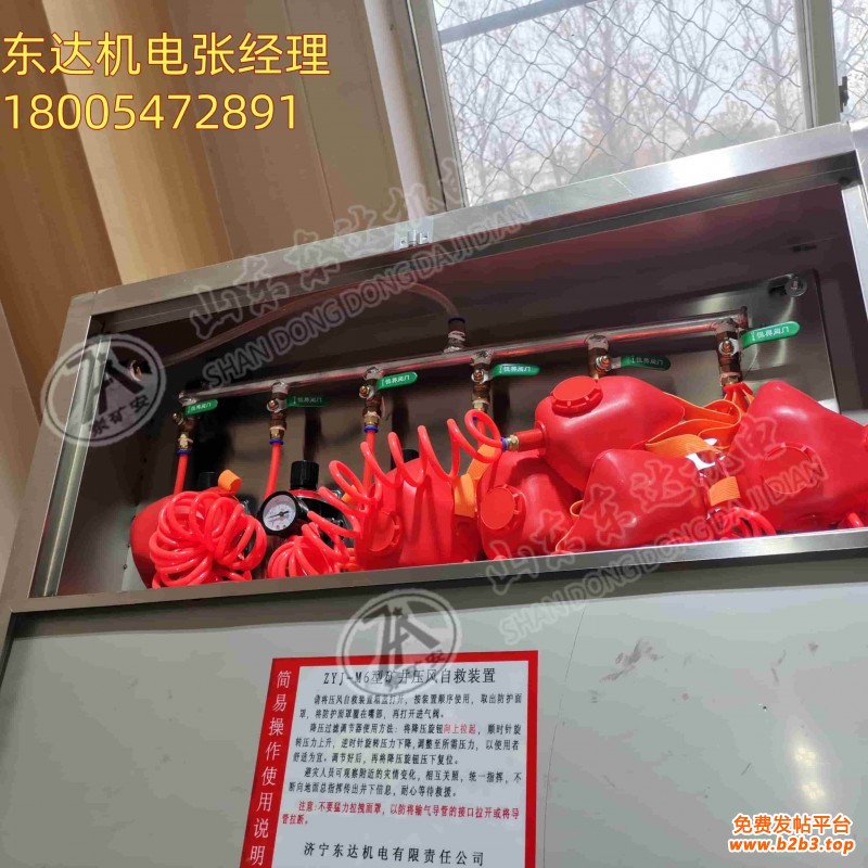 主要ZYJ-M型矿井压风自救装置是一种新型的隔绝式气体呼吸防护装置,本装置一箱六组(可根据要求设计组别),能同时提供六人使用,达到互相照顾的效果。