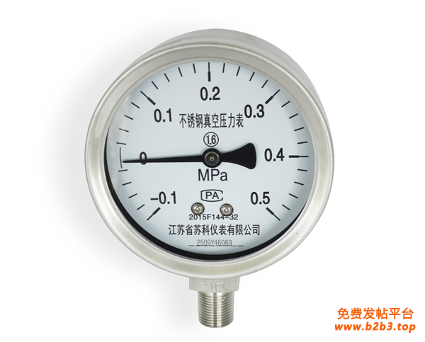 不锈钢真空表和不锈钢压力真空表用于测量对不锈钢316,316L及0Crl8Ni12MO2Ti无腐蚀作用的液体,气体介质的压力和负压,全不锈对环境有更强的耐蚀能力.