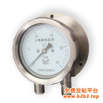 不锈钢差压表http://www.china-suke.com/product-yl58.htmlCYW-100B及CYW-150B不锈钢差压表(以下简称差压表)适用于化工、化纤、冶金、电力、核电等工业部门的工艺流程中测量各种液(气)体介质的差压、流量等参数。不锈钢差压表结构全部采用不锈钢制成,其中的测量系统(双波纹管及连接部件)、导压系统(包括接头、导管等)采用特种奥氏体不锈钢制成,具有耐腐蚀及抗工作环境侵蚀影响。仪表整体结构设计合理、具有体积小、重量轻、稳定性好、使用寿命长、外观新颖、适应性强等优点。仪表接头的连接形式有平行式(可直接与三阀组连接)和斜式两种,能够适应不同用户的配套安装。