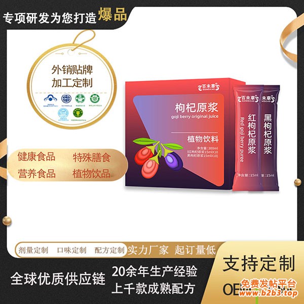 早红晚黑枸杞原浆正宗红黑鲜果花青素原液饮料15ml贴牌代加工