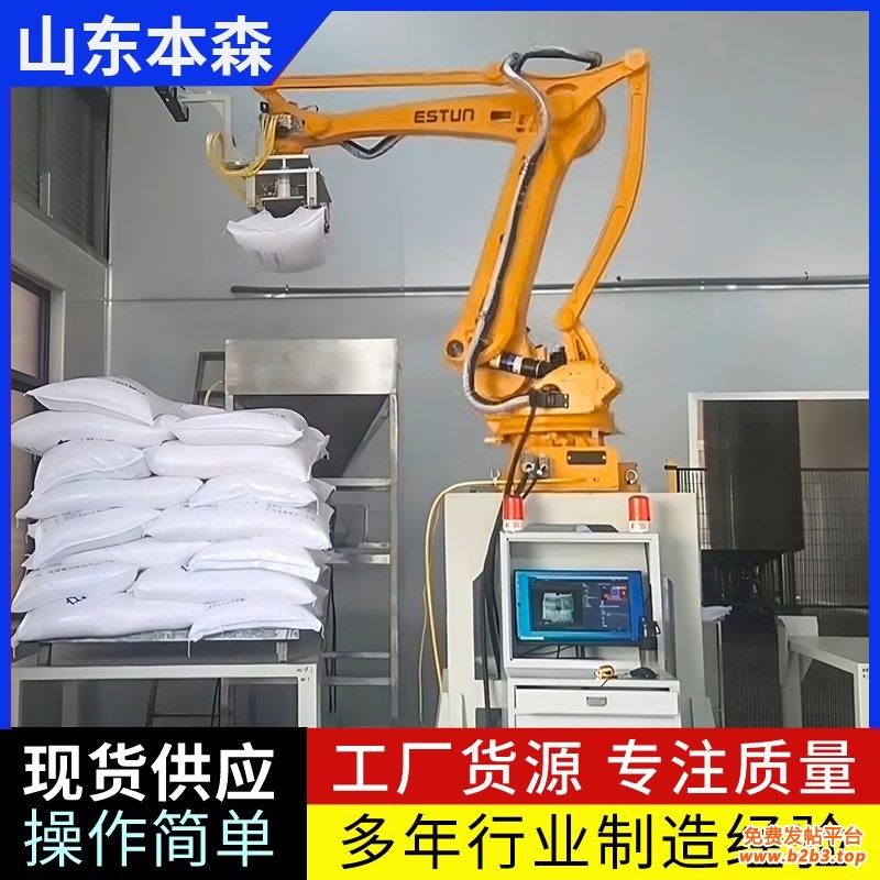 1.视觉定位与抓取:设备搭载3D激光相机或高精度视觉传感器,实时扫描料垛,识别葡萄糖袋的位置、姿态及尺寸信息,生成三维空间坐标。机械臂根据数据规划运动路径,通过真空吸盘或自适应夹爪稳定抓取袋体,抓取成功率达99.5%以上。