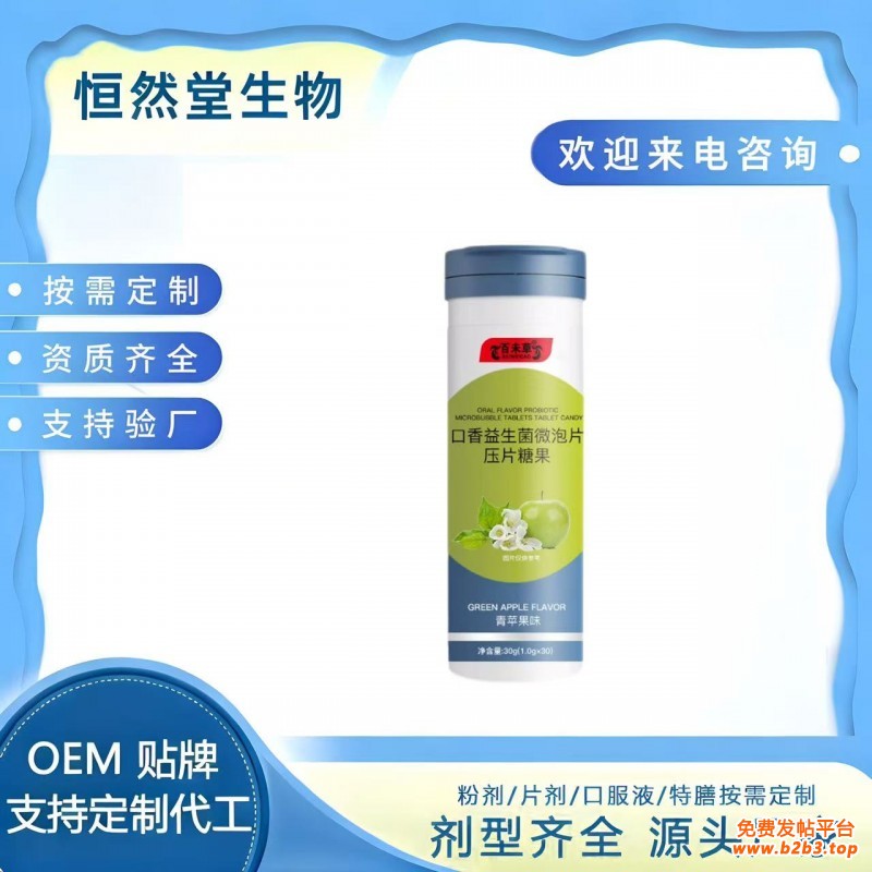 口香益生菌微泡片压片糖果 口气清新 山东庆葆堂提供一站式服务