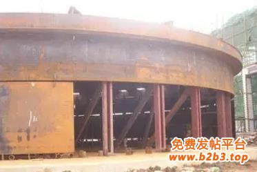 在第1圈壁板安装时,临时大门处要安装临时壁板(临时壁板厚度≥16mm,宽度与正式壁板相同),四周用H型钢(H型钢型号一般要大于H300)分段焊接加固。