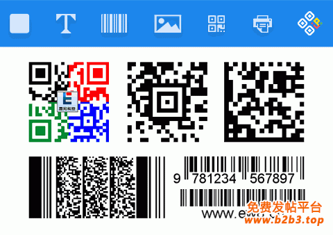 10.支持更多二维码。系统支持PDF417、QRCode、MSQR、DataMatrix、Aztec等二维码打印。目前国内大多数同类软件尚不支持二维码生成。