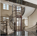 别墅电梯主要由曳引机(绞车)、导轨、对重装置、装置(如限速器、钳和缓冲器等)、信号操纵系统、轿厢与厅门等组成。这些部分分别安装在建筑物的井道和机房中。通常采用钢丝绳摩擦传动,钢丝绳绕过曳引轮,两端分别连接轿厢和平衡重,电动机驱动曳引轮使轿厢升降。电梯要求、输送、平层准确和乘坐舒适等。