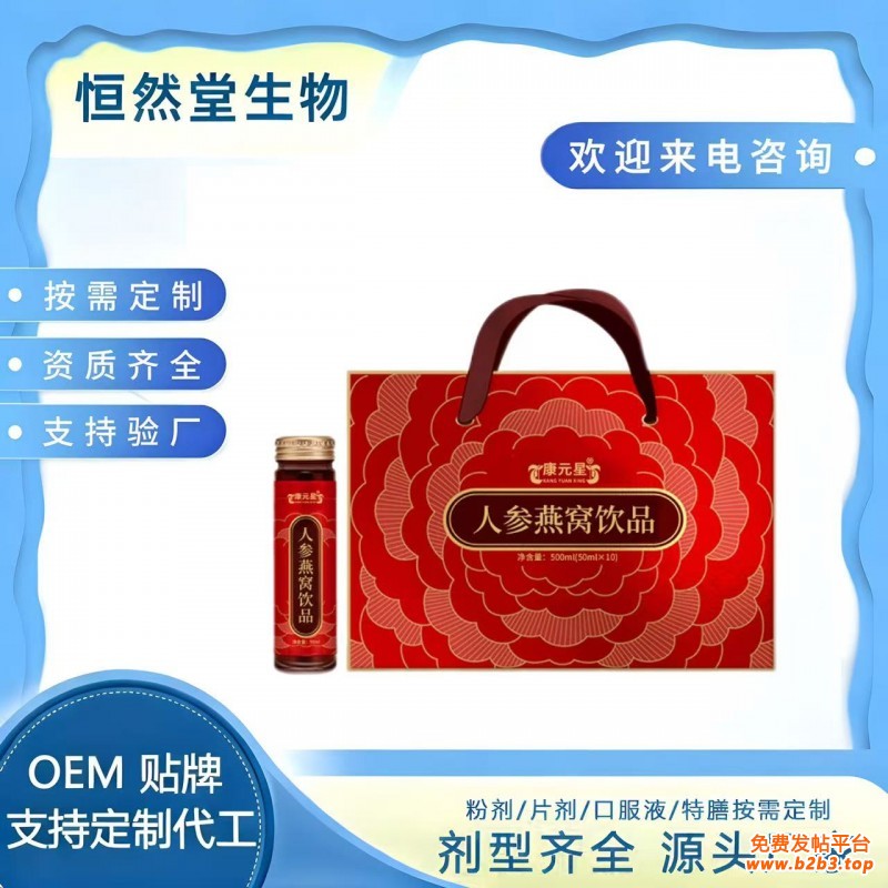 人参燕窝饮品 药食同源滋补植物饮品 山东恒然堂提供一站式服务