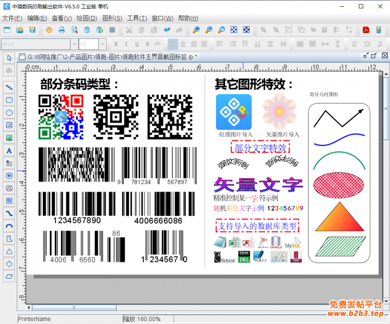 4.支持数据库导入,软件可以通过导入excel表、TXT文本的方式,实现数据的批量打印,提高工作效率及准确性。