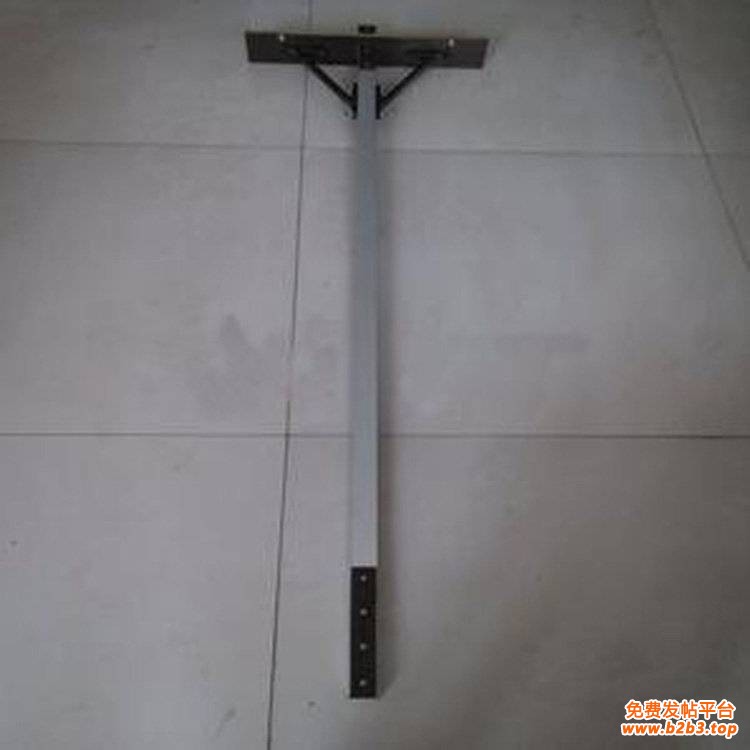 其结构由尺身、标度尺及尺身上的游框组成,尺身为双工形型材结构,呈方管形,在型材上下两边外沿带有向外延伸,在外沿内侧开有槽口,将其不锈钢标度尺插入在槽口内,然后在其端头用销钉固定,尺身中间装有游框,游框上固定有副尺,侧板,侧板上固定有调整螺栓,尺身端头装有十字板和测头,整个支距尺呈丁字形结构。