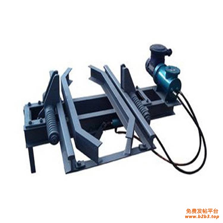 电动阻车器作为传统的斜巷阻车装置,可以单独在上下车场使用,也可与斜巷跑车防护装置配套使用,形成国家安全监察部门所要求的“一坡三挡”斜巷跑车防护系统。电动阻车器由驱动装置、连板、滚动心轴、滑道、缓冲挡块、连杆、传动轴、阻车爪、双轮行程开关构成闭锁装置。kuangan002