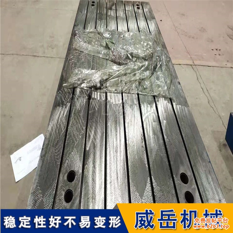 每个规格的 T型槽平台,均有额定承载能力(如 1000mm×1000mm 平台额定承载通常为 2-5 吨),若长期承受超过额定值的载荷(如在额定 5 吨的平台上放置 8 吨工件),会使材料超过屈服至顶,产生一直塑性变形;此外,若载荷集中在平台局部(如将重型工件仅放置在台面边缘),会导致局部应力超过材料强度,引发局部凹陷或翘曲。例如,某重型机械厂在 1500mm×2000mm 平台(额定承载 6 吨)上,长期将 10 吨的电机外壳放置在台面一侧,6 个月后该侧台面下沉 0.18mm,与另一侧形成明显高度差。