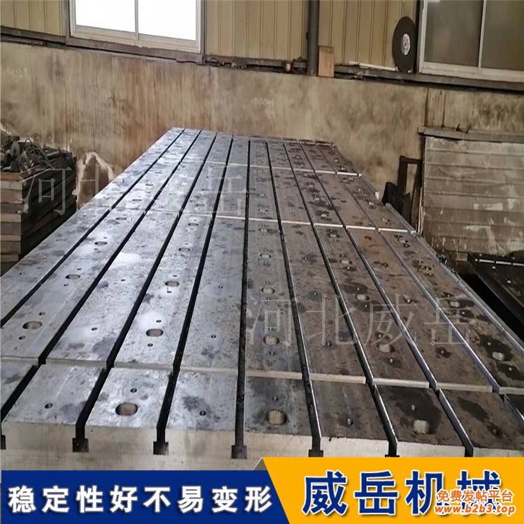 此外,选材的严谨性还直接影响 T 型槽铸铁平台的加工性能与使用安全性。好的铸铁具有均匀的组织和良好的切削性能,能够保证 T 型槽的加工精度和表面粗糙度(通常要求 Ra1.6-Ra3.2μm),确保工件定位的准确性。而劣质铸铁中常夹杂气孔、砂眼、缩松等缺陷,不仅增加加工难度,还可能在加工过程中出现崩刀、打刀现象,威胁操作人员安全;在使用过程中,这些缺陷会成为应力集中点,随着载荷的反复作用,可能引发平台突然断裂,造成设备损坏和人身伤害。http://www.chinaweiyue.com/